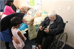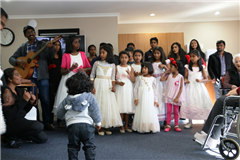 The Sunday school and Youth group of the OCBC’s Tamil congregation visited Ambridge Rose Manor. We had the mind set of cheering up the residents and making their day enjoyable. We were learning to interact and respect all different aged people in our community. Along the way we also learnt about responsibility. We sang songs, performed a musical skit, danced and made cards and gave the cards to the residents. We noticed even the elders that were very ill and with less mobility were able to participate and enjoy our performance, by tapping their feet, moving their bodies to the music and clapping their hands. There was one lady that especially intrigued us. The volunteers had told us that she never responded or involved herself in any activities, but she reciprocated to our songs. We were all wondering, when it stuck us that she understood the words to the Tamil songs. We spent some time with her and were delighted to see a smile on her face